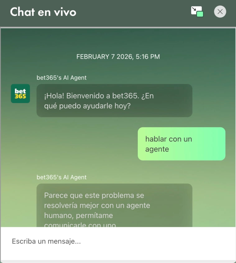 Los usuarios de Bet365 pueden recibir atención a sus dudas y problemas en tiempo real gracias al chat en vivo, la forma más rápida de comunicación con el soporte.