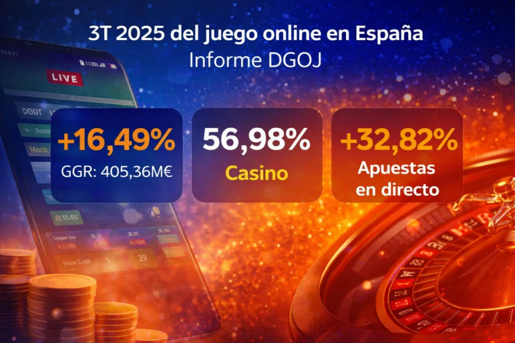 La DGOJ acaba de publicar el informe del 3T 2025 (julio–septiembre) y deja un mensaje fácil de entender: el mercado sigue creciendo fuerte frente al año pasado… pero por dentro está cambiando de forma. El casino ya es el “jefe” y, en apuestas, cada vez pesa más lo que pasa en vivo, con el partido en juego.